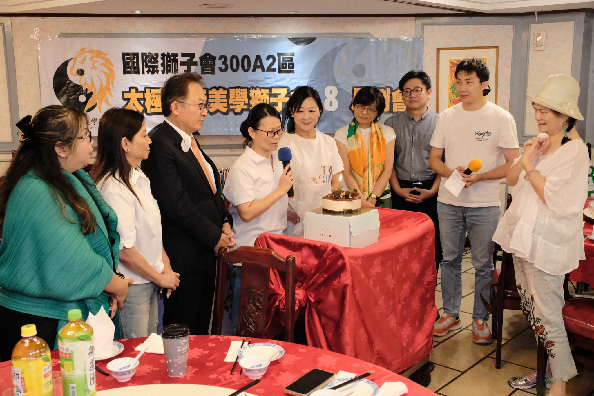 經過一天辛勞但成果豐碩的的捐血社服, 太極藝術美學獅子會接著來到天然臺湘菜餐廳舉辦八月例會, 謝謝秘書長蒞臨指導並致贈社服金